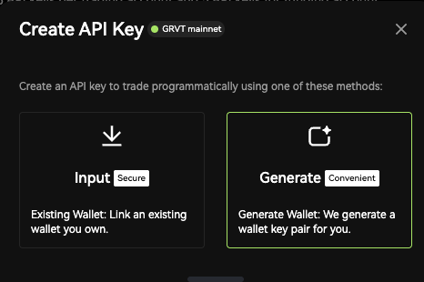 Then select Generate (Let grvt generate a wallet key pair for you)